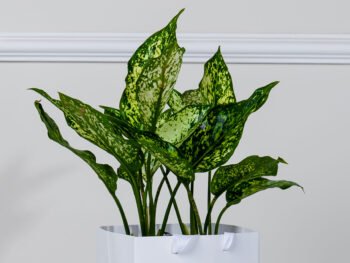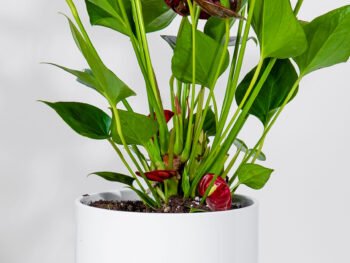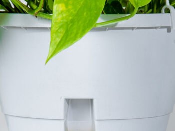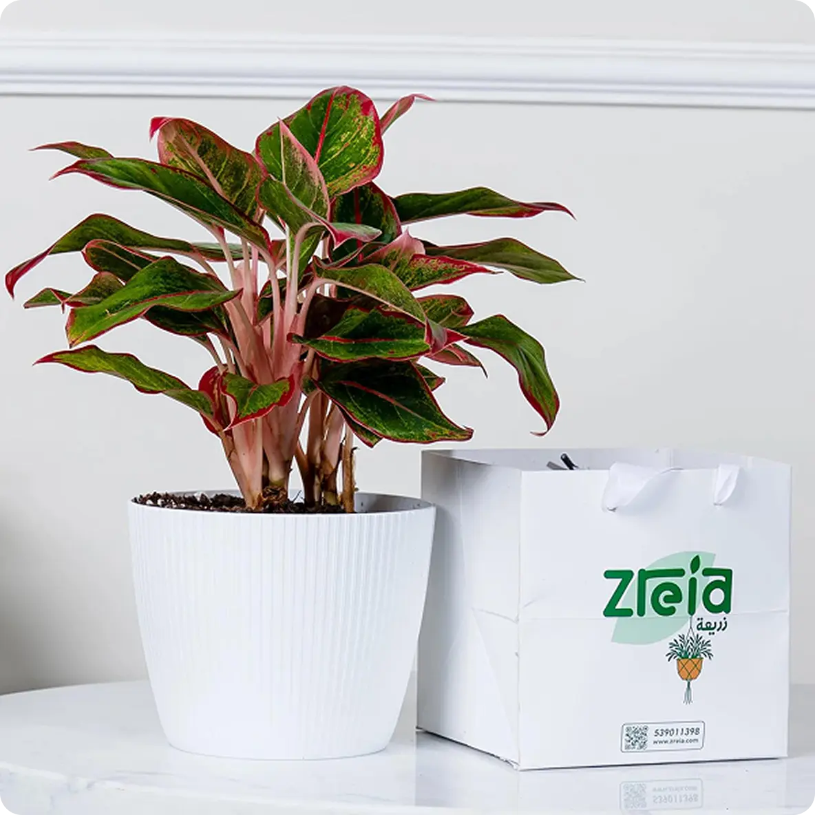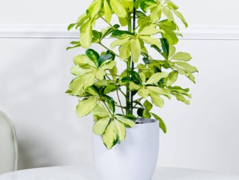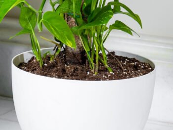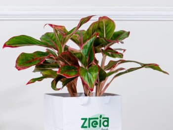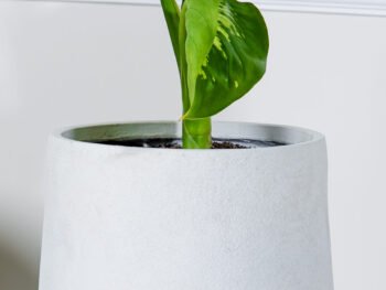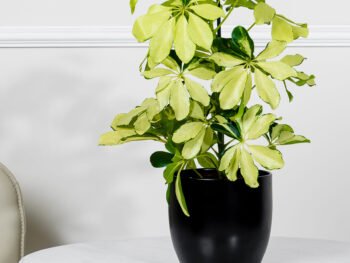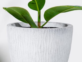 نبتة الزاميا السوداء في حوض فايبر جلاس أبيض انيق