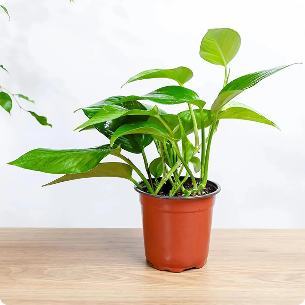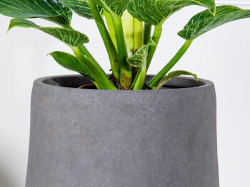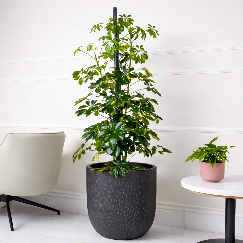 نبتة الزاميا الخصراء في حوض فايبر جلاس أسود أنيق .