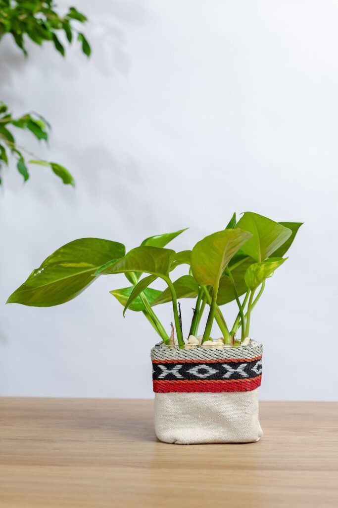 نبتة بوتس في حوض زجاجي مربع مغلف بشكل انيق