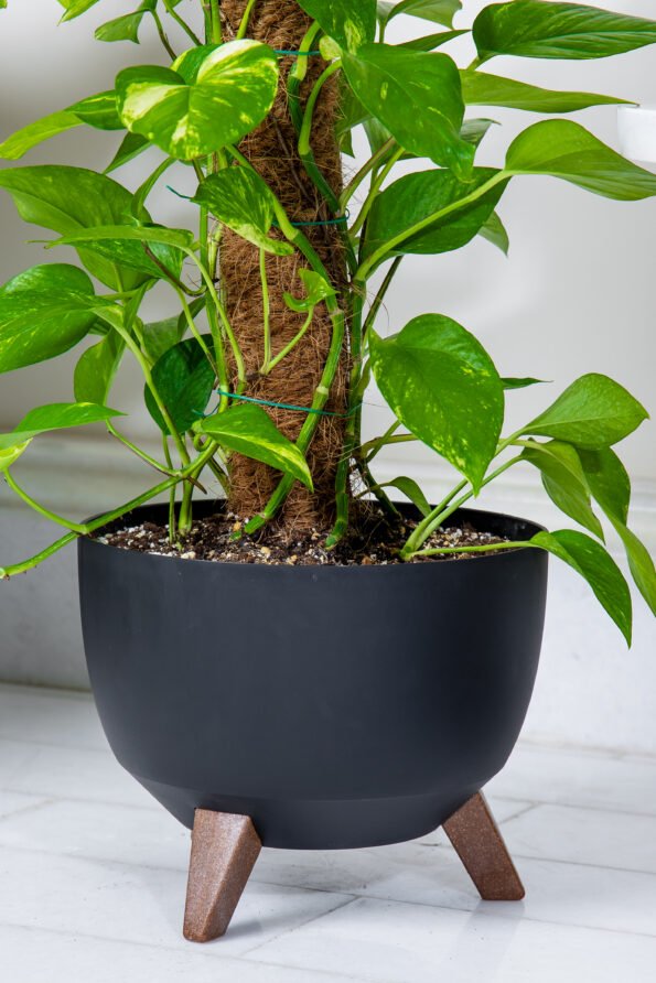 - تصميم عصري الأصيص الأسود مع القاعدة الخشبية يناسب كل ديكور.