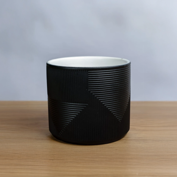 حوض نباتات رخامي بتصميم بسيط وهاديء ، بخطوط ناعمة على شكل أسهم. تصميم أنيق وبسيط يليق بالمنازل، المكاتب، وكل المساحات الداخلية الهادئة.