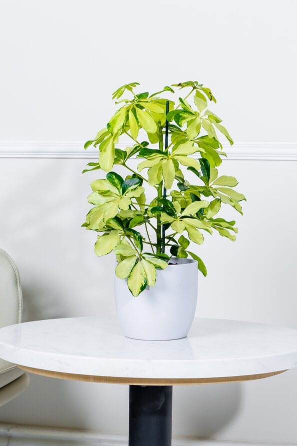 نبتة الشفليرا الذهبية في أصيص سيراميك سماوي فاتح