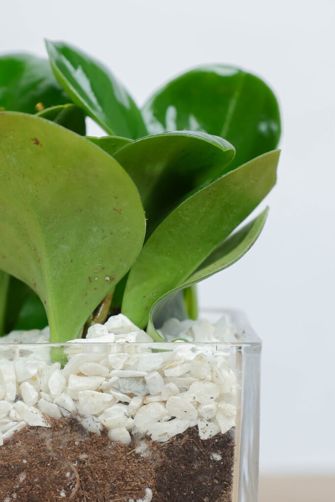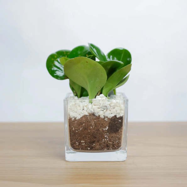 نبتة ببروميا صغيرة في فازة زجاجية مربعة