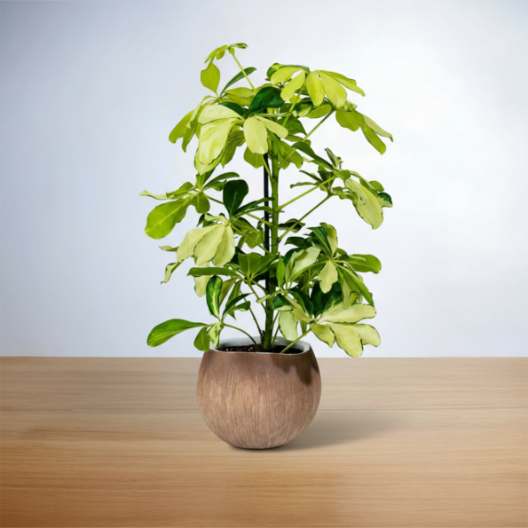 نبتة شفليرا ذهبية في أصيص سيراميك بتصميم جوز الهند
