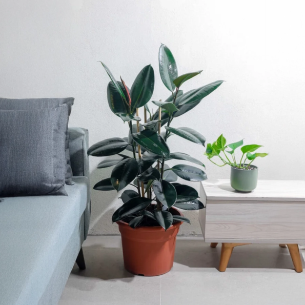تخيل نبات الفكس المطاط الكبير وهو يتوسط مدخل منزلك أو يزين زاوية مكتبك، بأوراقه الداكنة اللامعة التي تعكس الضوء وتمنح المكان روحًا طبيعية أنيقة تدوم طويلًا.
