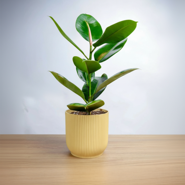 نبتة فيكس مطاط في مركن بلاستيك اصفر