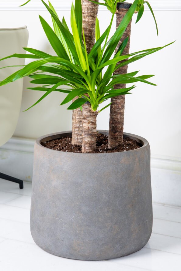نبتة يوكا 150 سم في حوض فايبر جلاس رمادي