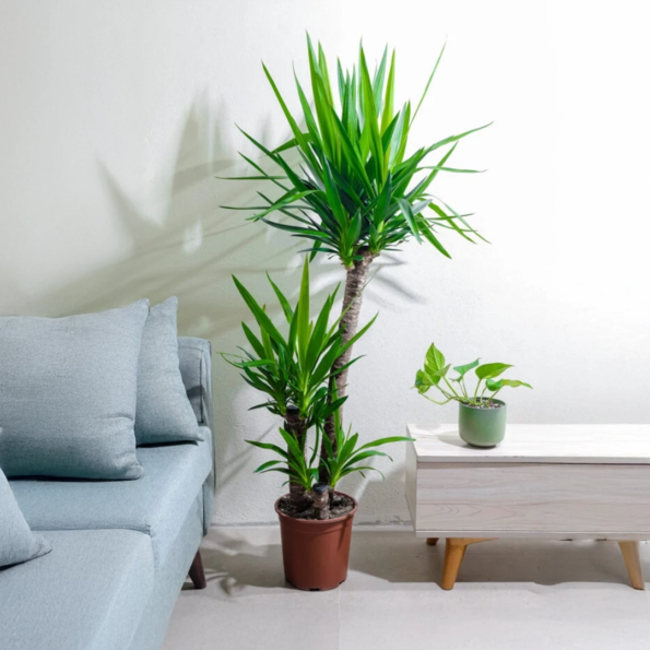 تخيل مدخل بيتك أو ركنًا في صالة الجلوس وقد وضعت نبتة يوكا بجانب أريكة مريحة أو إضاءة أرضية ناعمة. امتداد أوراقها الطويلة يخلق إحساسًا بالحياة والطبيعة، وكأنها لمسة طبيعية مستمرة تملأ المكان بالحيوية والانتعاش.
