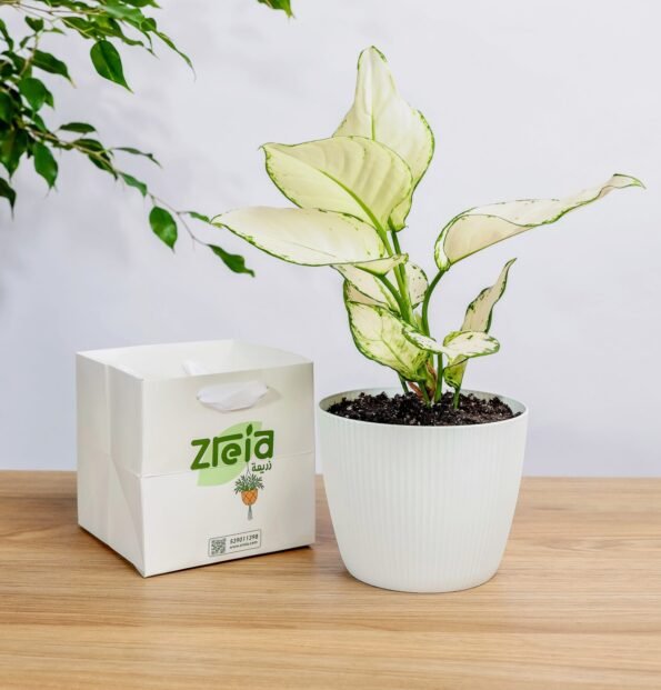 aglaonema نبتة تتميز بجمال أوراقها المبرقشة وسهولة العناية بها، حيث تتحمل الإضاءة الداخلية المعتدلة وتحتاج لري معتدل فقط عند جفاف التربة. حجمها الصغير يجعلها مثالية للمساحات الضيقة مثل المكاتب أو الأرفف الصغيرة. تصميم الأصيص الأبيض المخطط يمنح لمسة حديثة تناسب مختلف أنماط الديكور. كما أن النبتة تعيش لفترة طويلة وتمنح شعورًا بالانتعاش في المكان. كل ذلك بأسعار تنافسية تناسب مختلف الميزانيات.