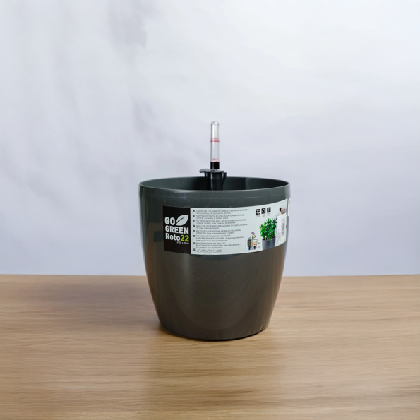حوض نباتات ري ذاتي دائري 22 سم – رمادي