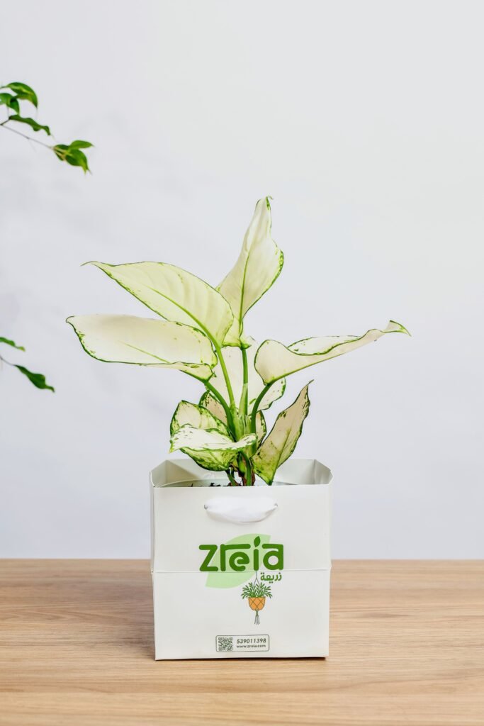 نبتة الزاميا السوداء في حوض فايبر جلاس أبيض انيق